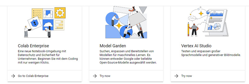 Mehr Informationen und die Möglichkeit, das Produkt zu testen, erhalten sie über die offizielle Webseite von Google – VertexAI